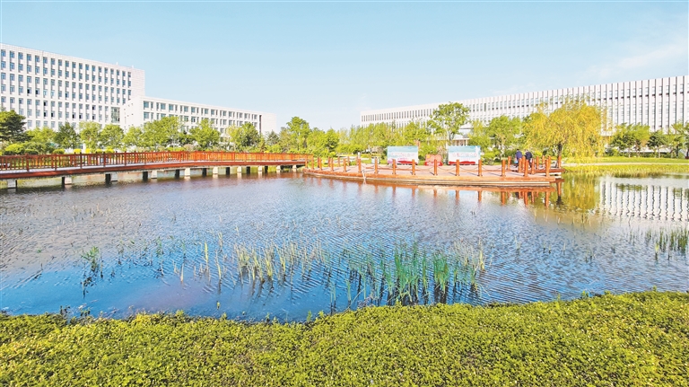走過木質(zhì)連廊,駐足在木頭棧橋上,望著波光粼粼的池水,我從中分明聽出了生命的潮聲。岸邊的蘆葦隨風(fēng)舞動,水中的小魚自由暢游。黃昏時分的養(yǎng)正講堂里,琴聲悠揚,歌聲浩蕩,這是學(xué)生們在課余時間自找的樂趣。路邊的灌木叢和榆葉梅靜默著,似乎也沉浸于難得的清靜之中。再往北行,第四學(xué)生公寓旁種植著一片白樺林,它們最不起眼,那些四季如一的白樺樹,好像要證明什么,又好像在堅守著什么。與白樺林隔道相望,便是新建的人才公寓,那里住著來自多個國家的留學(xué)生,他們用不同的膚色和眼睛,感受和欣賞著這座年輕的校園。2015年1月,這所學(xué)校從學(xué)府路校園整體搬遷到今天的哈南新校園。時至今日,已整整十年。哈南十年,櫛風(fēng)沐雨,建設(shè)并未止步,就像這所大學(xué)的發(fā)展也并未止步。