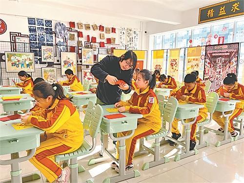 老師在指導(dǎo)學(xué)生學(xué)習(xí)剪紙技藝。朱悅攝