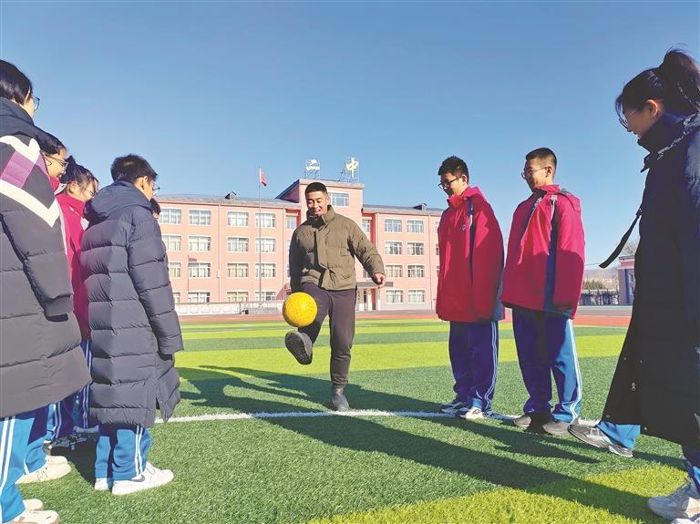 “今天的體育課,我們練習踢毽子和足球帶球腳法,增加體能鍛煉,以備過幾天冰場澆筑好后開始滑冰,大家活動開了就不冷了,我先給大家做個示范……”阜寧鎮(zhèn)第二中學操場上,體育老師佟偉正在指導學生們上體育課。孩子們認真練習,快速掌握了技巧。